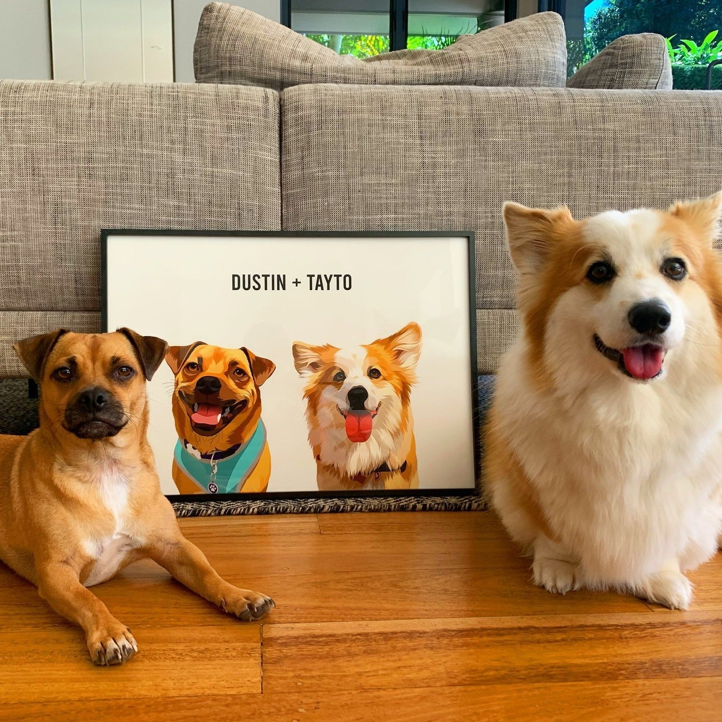 Two peas in a pod. Create a lasting memory of your partners in crime with a custom two-pet portrait. All portraits are exported in high-resolution to highlight your pet's unique features.