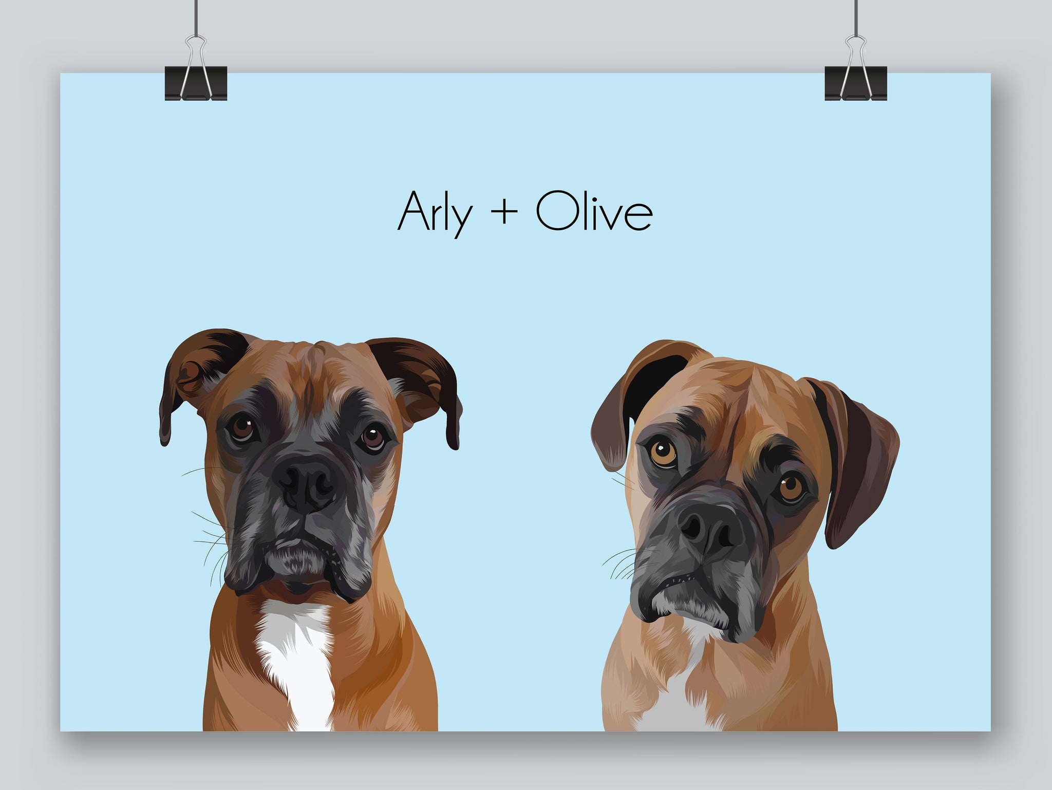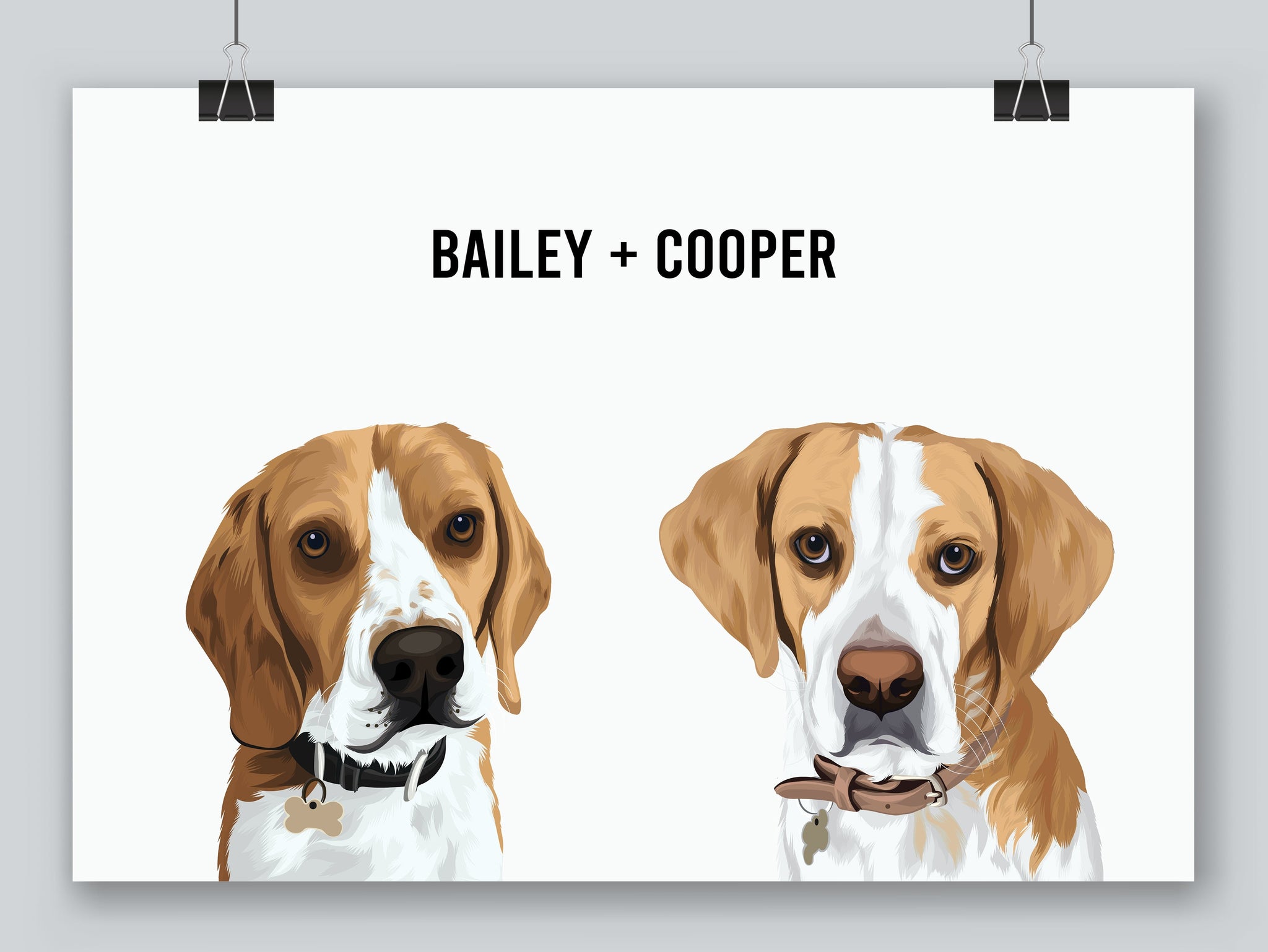 Two peas in a pod. Create a lasting memory of your partners in crime with a custom two-pet portrait. We use state of the art Giclée print technology to capture your pets in a superb level of detail.